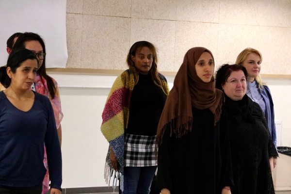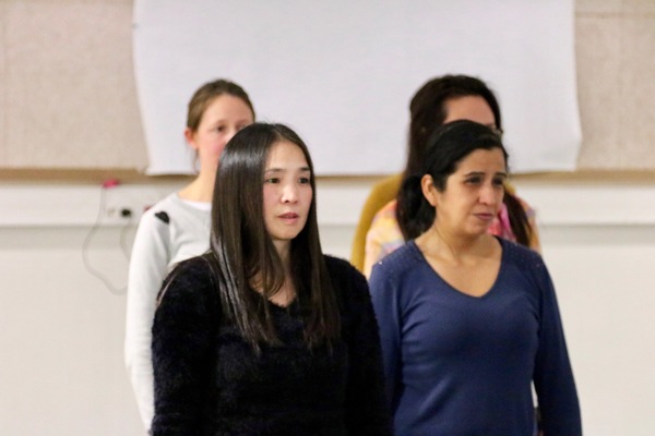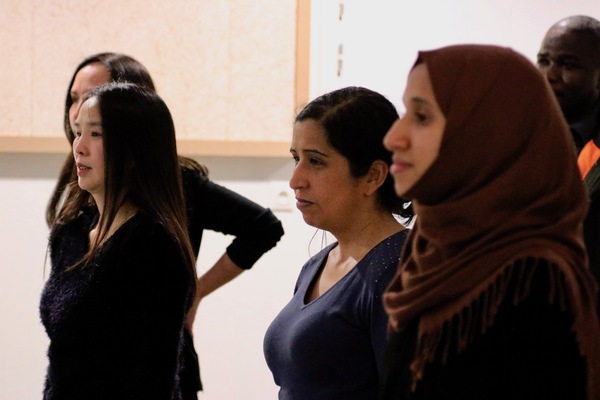 Pendant plusieurs jours, des femmes et des hommes, de Soudan, Maroc, Ukraine, Thaïlande, Pérou, Albanie, Tunisie, Yemen, Chine, Géorgie et Ethiopie se rencontrent pour un stage d’écriture et de pratique théâtrale. Le groupe prépare une rencontre avec des spectateurs, à partir d’expériences, de savoir-faire et des désirs de chacun.e.