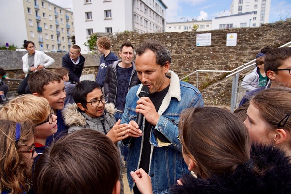 - Observation du paysage de la rade de Brest à partir de la passerelle du jardin des explorateurs : Lionel Jaffrès du théâtre du Grain guide les élèves en faisant appel à leurs émotions, leurs sens et sensations et leur imaginaire. Les mots, transition poétique entre le paysage extérieur et leur état intérieur …