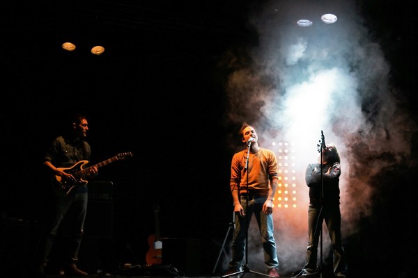 Le musicien, au cœur du plateau, joue en direct à la guitare et sur machines une partition immersive pour faire entendre au spectateur le silence, la brisure, le désamour.