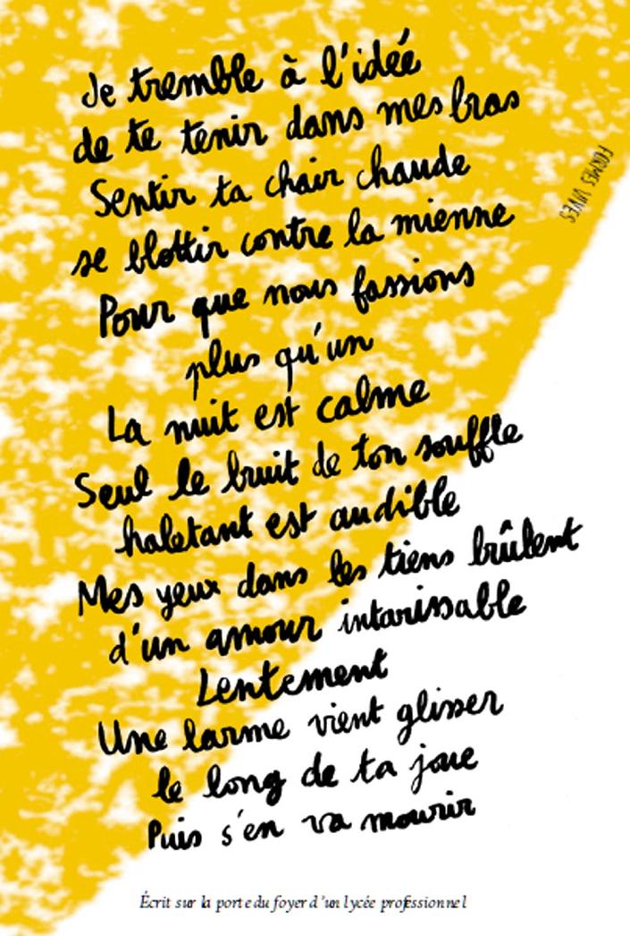 ( Texte écrit par un élève sur la porte du foyer d’un lycée professionnel. Il figure sur le verso de l’affiche d’Appetitus. )
