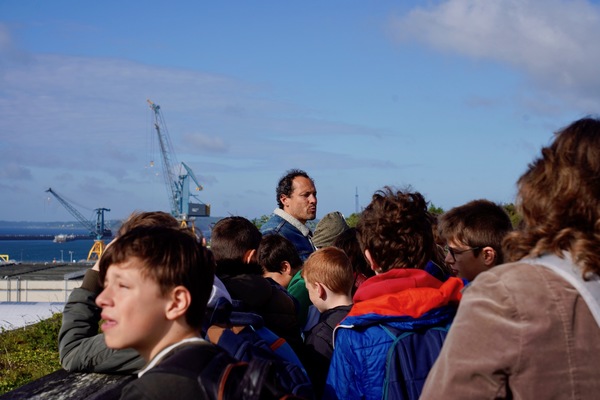 - Observation du paysage de la rade de Brest à partir de la passerelle du jardin des explorateurs : Lionel Jaffrès du théâtre du Grain guide les élèves en faisant appel à leurs émotions, leurs sens et sensations et leur imaginaire. Les mots, transition poétique entre le paysage extérieur et leur état intérieur …